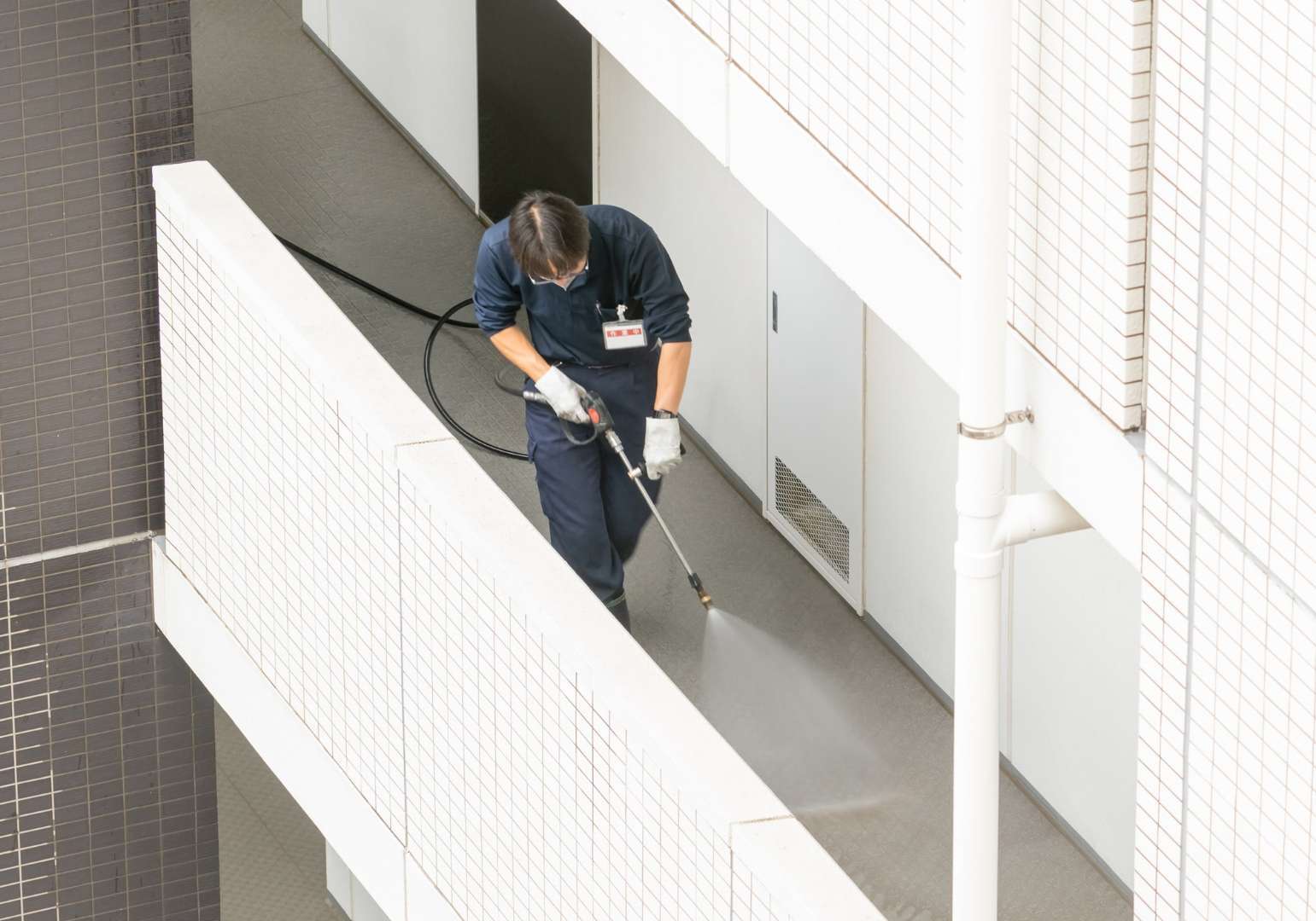 定期清掃は、月1回~数ヶ月に1回程度のペースで行う清掃です。主に機械を使った床の剥離清掃やワックス掛け、外壁の高圧洗浄、照明の交換、空調の清掃・点検、植栽の剪定など、日常的には取り掛かりにくい場所の清掃・メンテナンスを集中して行います。
